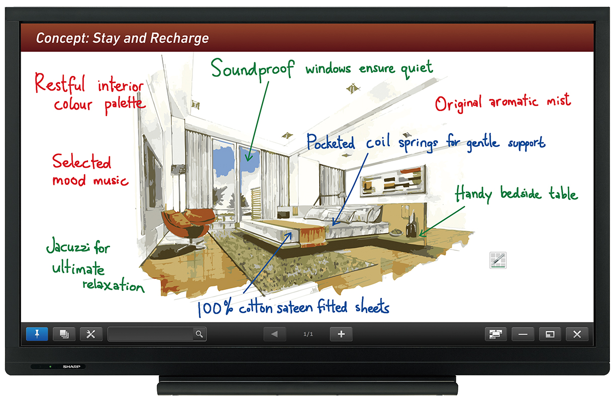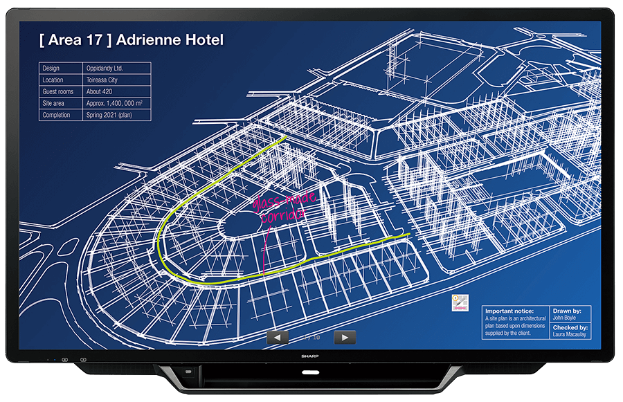 With the Sharp’s 60″ PN-C605B, 70″ PN-C705B and 80″ PN-C805B AQUOS BOARD® interactive display system, you have the ideal focal point for meetings, presentations, or lessons. Direct bonding technology make the touchscreen feel and appear impressively natural. Smart and Convenient SHARP Pen Software enables real-time information sharing. Thanks to multi-touch sensitivity, up to four people can write freely onscreen at the same time for effective and lively exchanges. And handy front-access buttons enable quick operation of common functions. Create learn and share more effectively with the new C605B, C705B and C805B AQUOS Boards!